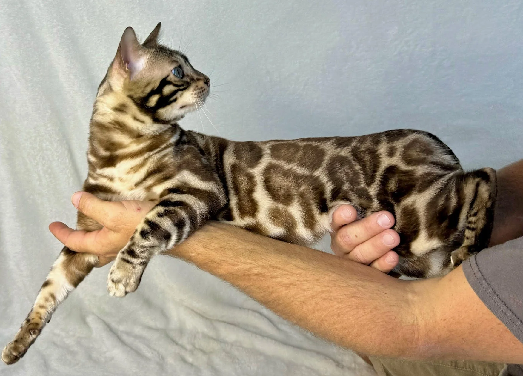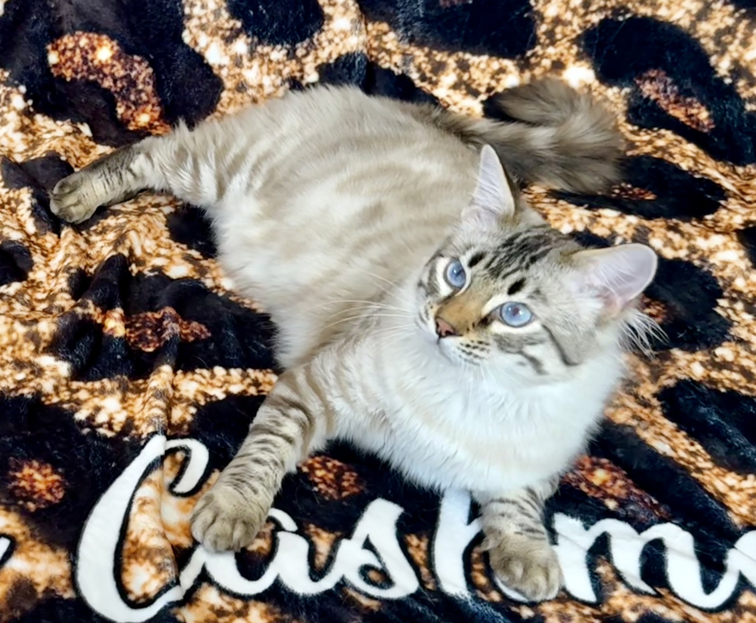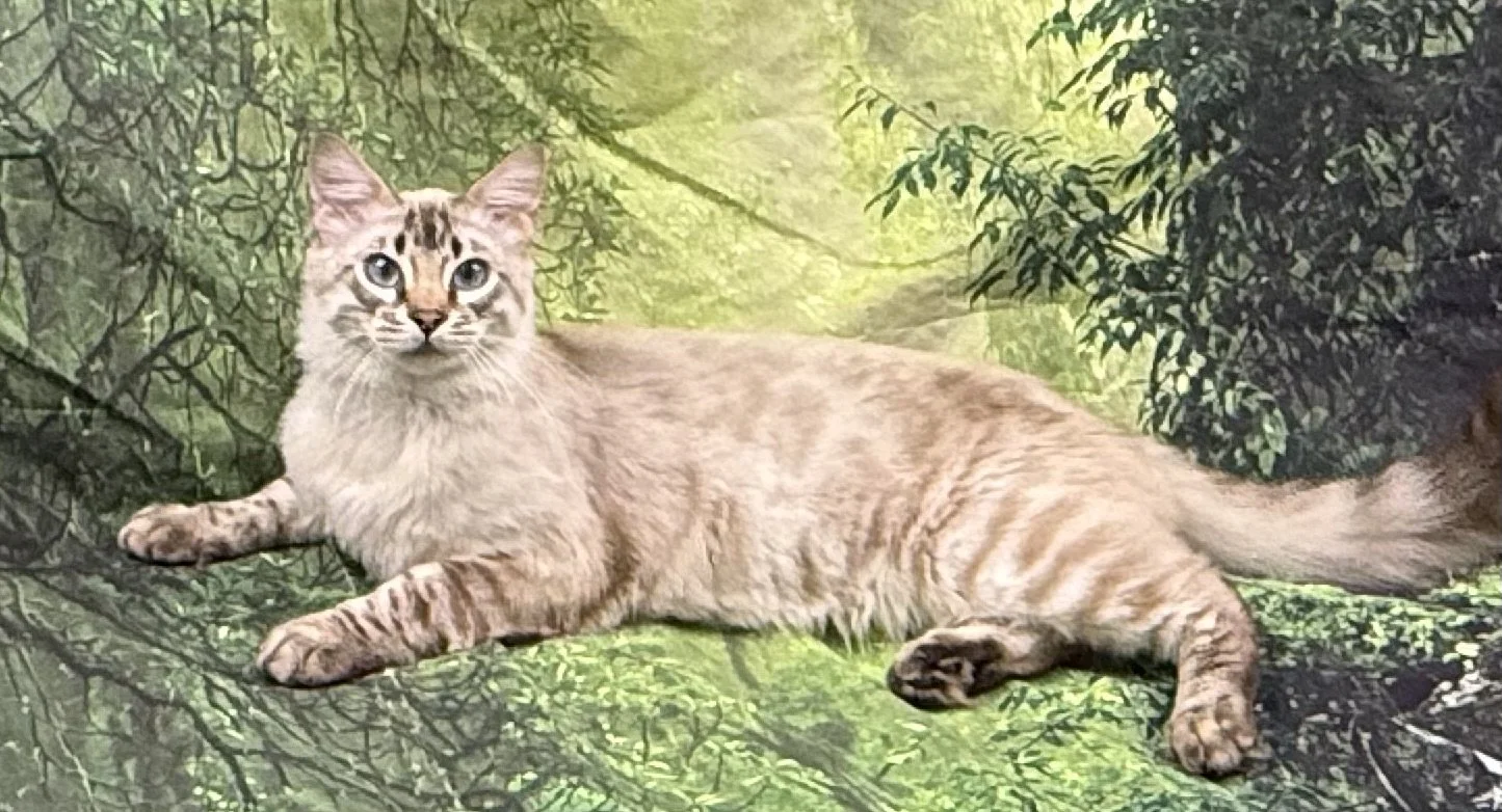 All the way from Germany, he is a Cashmere (long hair) Bengal.